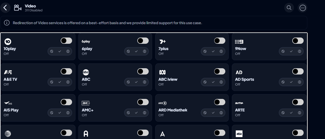 So is it possible to add an option to select multiple and apply the Block/bypass/redirect at once or apply to the whole category in the services (similar what its possible on the custom rules and folders)