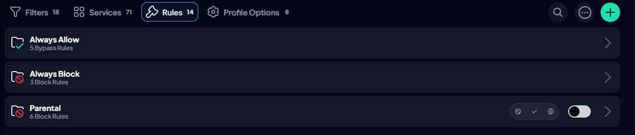 for exemple my Parental folder rule is currently disable but I don't see the information