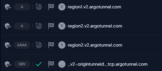 the domains argotunnel.com is used for the cloudflared tunnel and failed even if service Cloudflare is set to direct