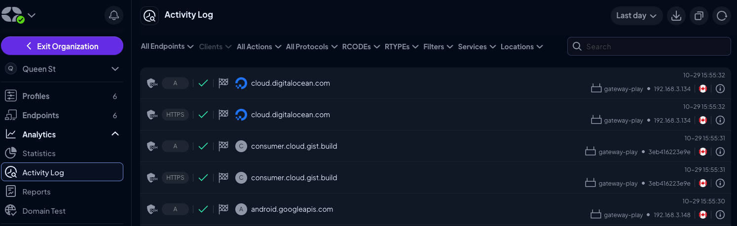 Full AnalyticsIn order to see DNS queries in the Activity Log, you need to enable "Full" Analytics log level.