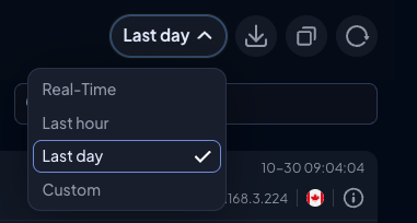You can select Real-Time from the date selection dropdown to see DNS queries that are being made on a chosen Endpoint in real time.