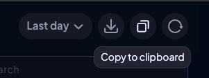 The button to the left of the copy button will export and download the currently collected logs in a convenient .csv format.
