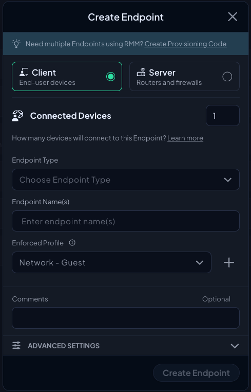 The first thing you need to do is create an Endpoint that you plan to deploy and configure Control D with.