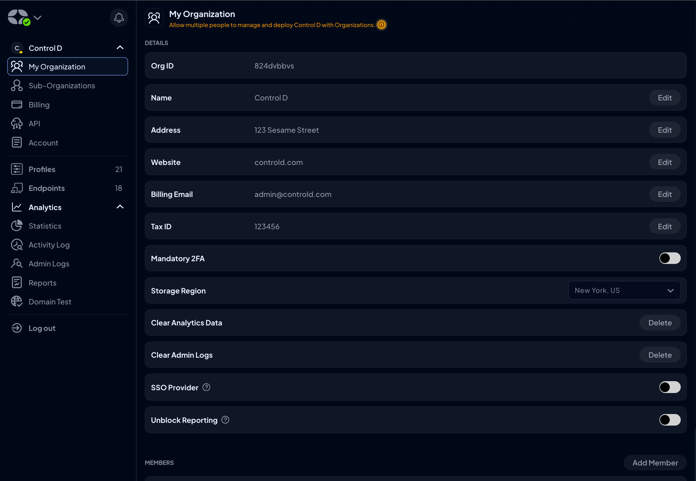 In the My Organization tab, you can manage basic details of your company and make customizations. These include: